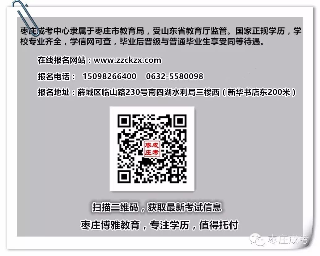 我们能做的只是为您们提供更多的信息和分析,但自己的路自己选,自己的未来自己把握,最后也希望大家都能在我们的帮助下为自己选出最好的出路。或许您还有其他的细节问题或顾虑,那么接下来时间,欢迎大家随时向枣庄成考咨询!